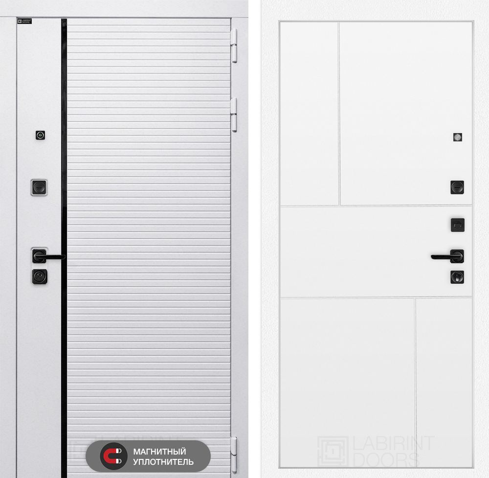 Отделка снаружи: Современная MDF панель 10 мм с наличником, цвет «Лофт белый», вставка черный молдинг
