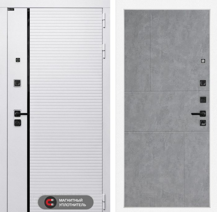 Отделка снаружи=’Современная MDF панель 10 мм с наличником, цвет «Лофт белый», вставка черный молдинг’