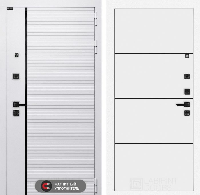 Входная дверь ROYAL 25 — Белый софт, черный молдинг