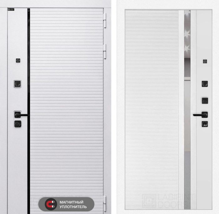Входная дверь ROYAL 31 — Белый софт, зеркальная вставка с тонировкой
