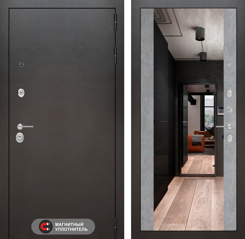 Внутренняя отделка: Декоративная MDF панель 16 мм с широким зеркалом, цвет «Бетон светлый»