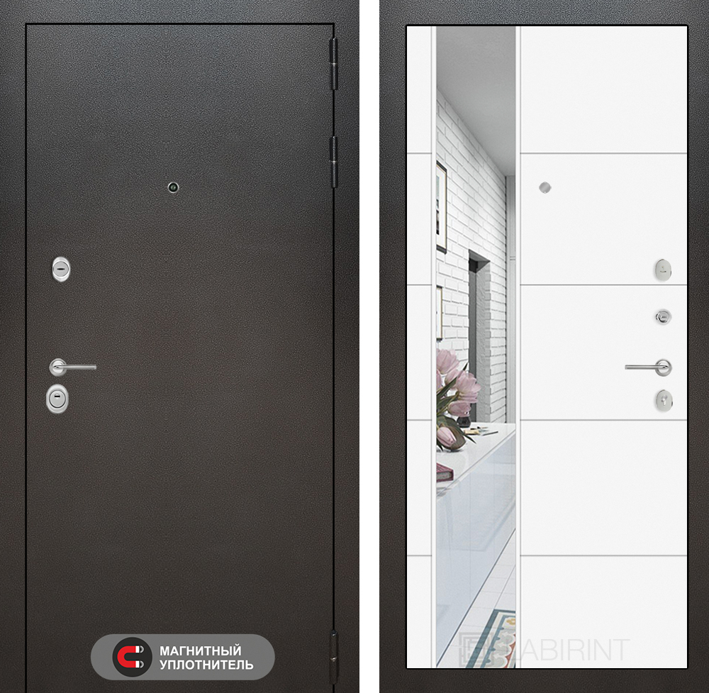 Внутренняя отделка: Декоративная MDF панель 12 мм с Зеркалом (ширина 230 мм), цвет «Белый софт»