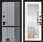 Отделка снаружи: Фрезерованная МДФ панель 10 мм, цвет «Velluto Grigio» с патиной и вставкой из металла в цвет наличника