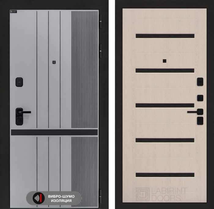 Главная Двери премиум SKYLAB Входная дверь SKYLAB 01 — Беленый дуб, стекло черное