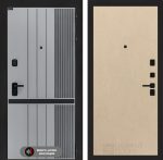 Отделка снаружи: Фрезерованная МДФ панель 10 мм, цвет «Velluto Grigio» с патиной и вставкой из металла в цвет наличника