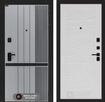 Отделка снаружи: Фрезерованная МДФ панель 10 мм, цвет «Velluto Grigio» с патиной и вставкой из металла в цвет наличника