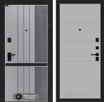 Отделка снаружи: Фрезерованная МДФ панель 10 мм, цвет «Velluto Grigio» с патиной и вставкой из металла в цвет наличника