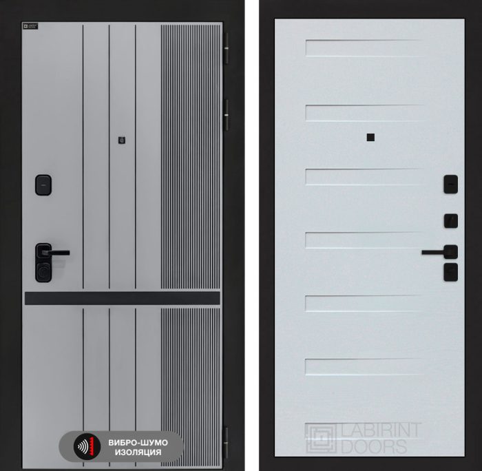 Отделка снаружи=’Фрезерованная МДФ панель 10 мм, цвет «Velluto Grigio» с патиной и вставкой из металла в цвет наличника’