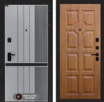 Отделка снаружи: Фрезерованная МДФ панель 10 мм, цвет «Velluto Grigio» с патиной и вставкой из металла в цвет наличника