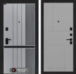 Отделка снаружи: Фрезерованная МДФ панель 10 мм, цвет «Velluto Grigio» с патиной и вставкой из металла в цвет наличника