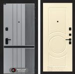 Отделка снаружи: Фрезерованная МДФ панель 10 мм, цвет «Velluto Grigio» с патиной и вставкой из металла в цвет наличника