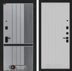 Отделка снаружи: Фрезерованная МДФ панель 10 мм, цвет «Velluto Grigio» с патиной и вставкой из металла в цвет наличника