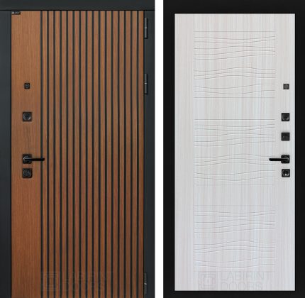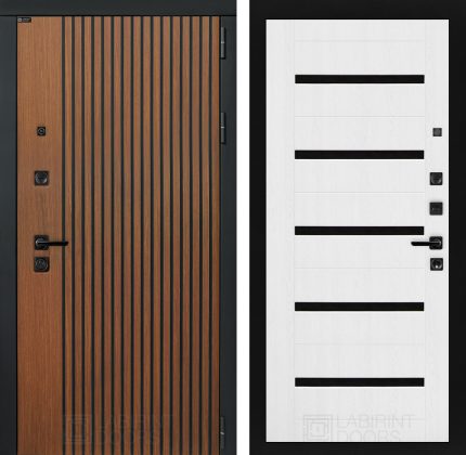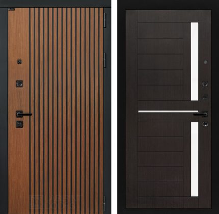 Отделка снаружи=’Декоративная МДФ панель 10 мм в цвете «Дуб кантри темный» с черной патиной, наличники «Черный кварц»‘