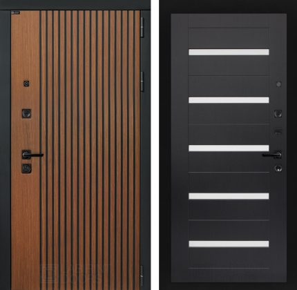 Отделка снаружи=’Декоративная МДФ панель 10 мм в цвете «Дуб кантри темный» с черной патиной, наличники «Черный кварц»‘