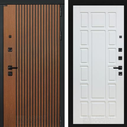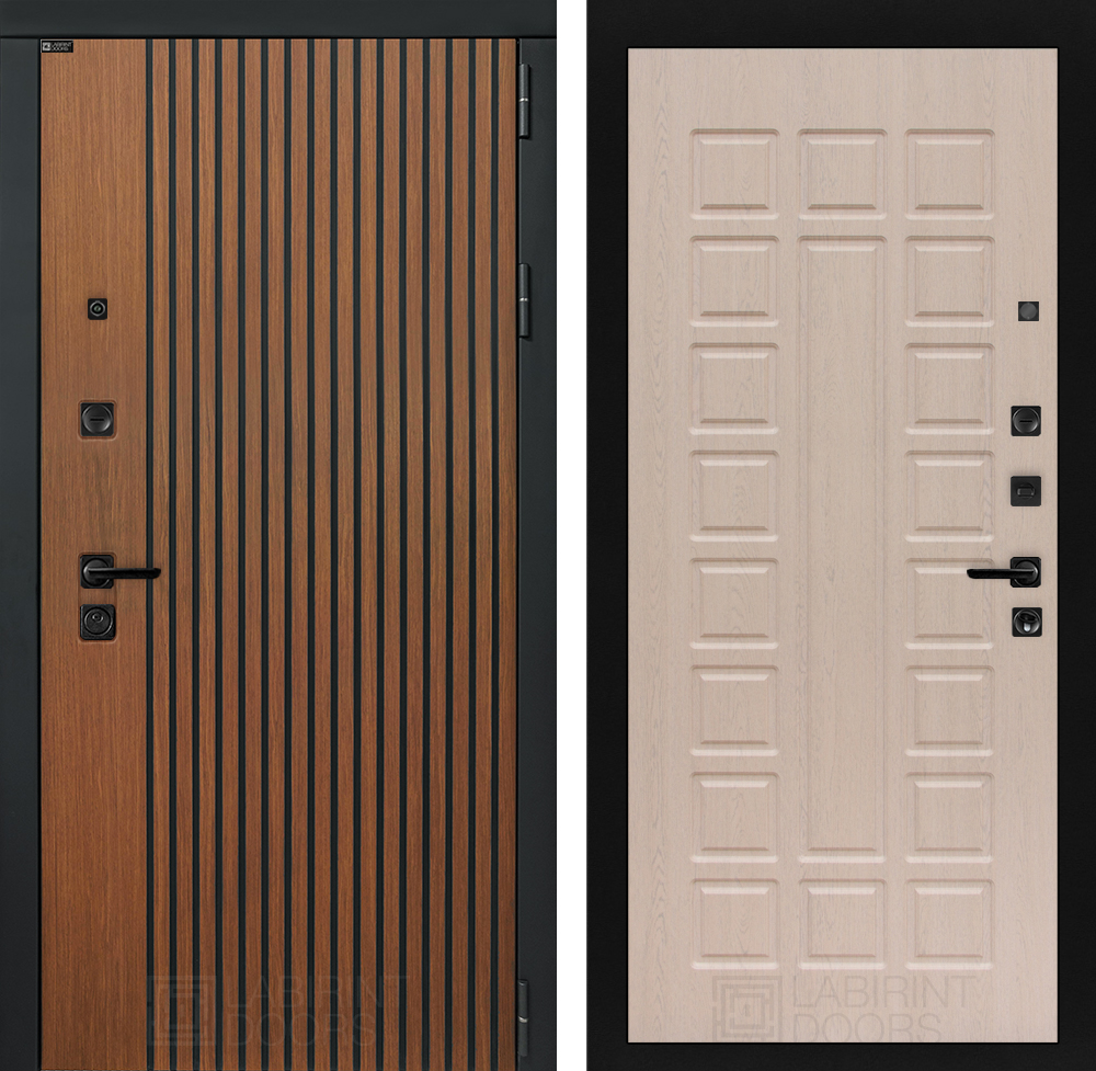 Полный комплект: Фурнитура в черном цвете: Броненакладка врезная, накладка со шторкой, глазок , дверная ручка, ночная задвижка. Цилиндр ключ-вертушка (производитель не регламентируется), регулируемый эксцентрик.’