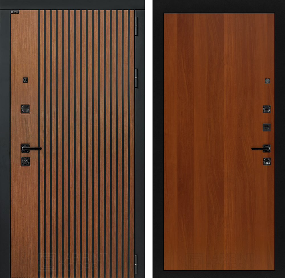 Полный комплект: Фурнитура в черном цвете: Броненакладка врезная, накладка со шторкой, глазок , дверная ручка, ночная задвижка. Цилиндр ключ-вертушка (производитель не регламентируется), регулируемый эксцентрик.’