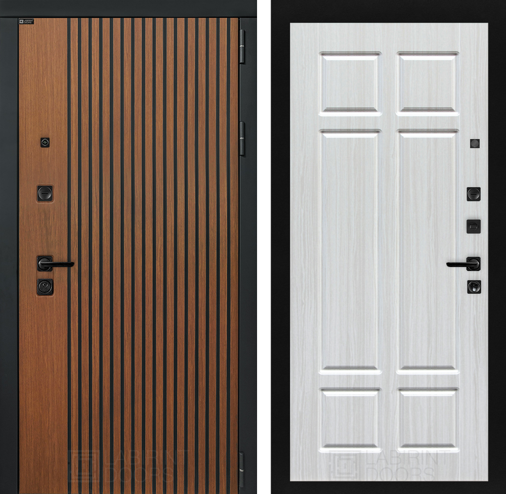 Полный комплект: Фурнитура в черном цвете: Броненакладка врезная, накладка со шторкой, глазок , дверная ручка, ночная задвижка. Цилиндр ключ-вертушка (производитель не регламентируется), регулируемый эксцентрик.’