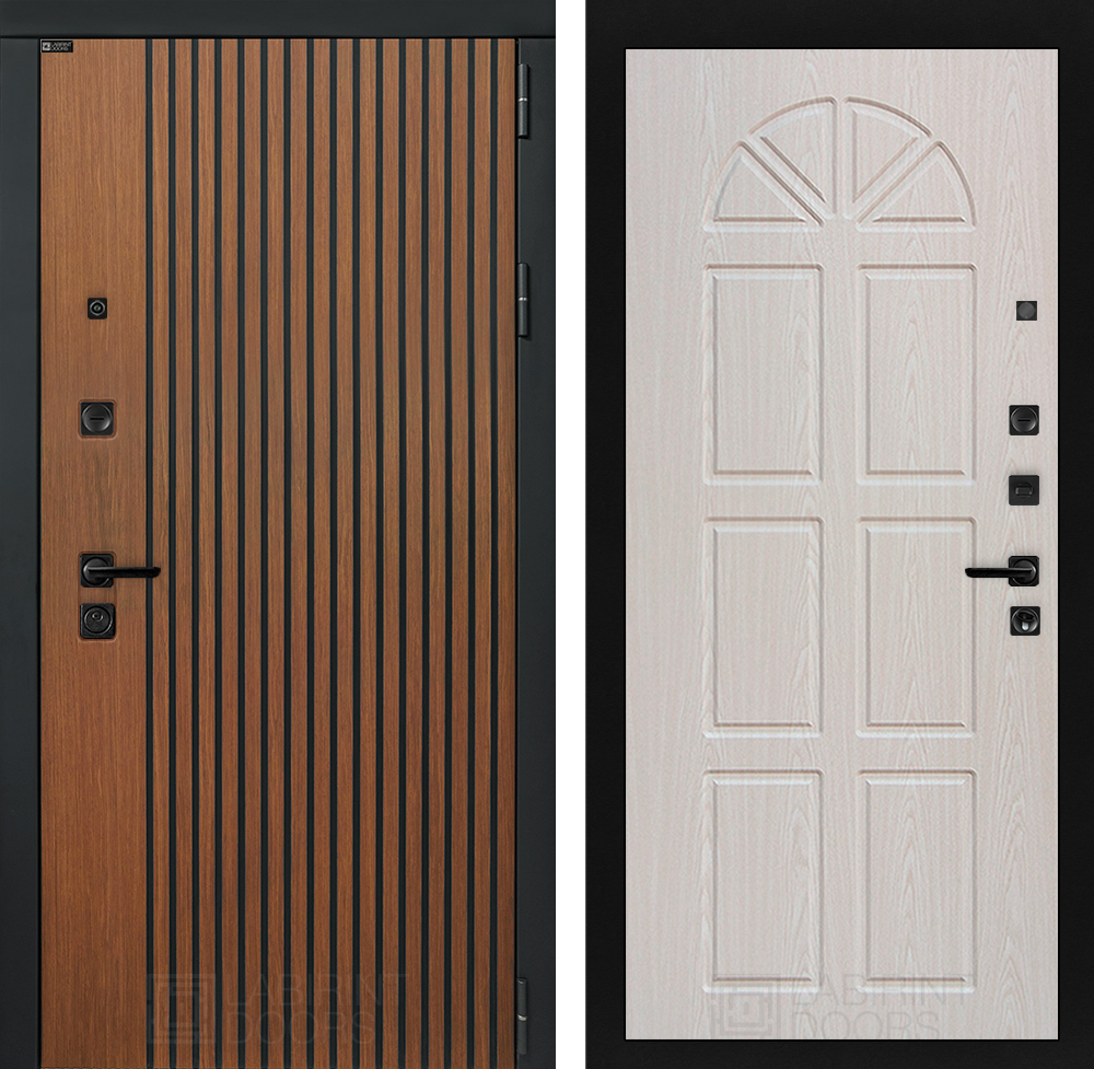 Полный комплект: Фурнитура в черном цвете: Броненакладка врезная, накладка со шторкой, глазок , дверная ручка, ночная задвижка. Цилиндр ключ-вертушка (производитель не регламентируется), регулируемый эксцентрик.’