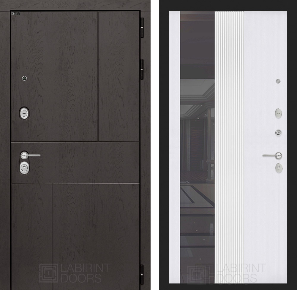 Внутренняя отделка: Фрезерованная МДФ панель 10 мм с тонированным зеркалом (ширина 244 мм), цвет «Белый рельеф софт»