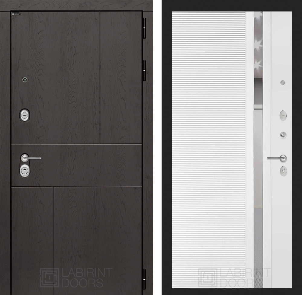 Внутренняя отделка: Фрезерованная МДФ панель 10 мм с зеркальной тонированной вставкой 60 мм, цвет «Белый софт»