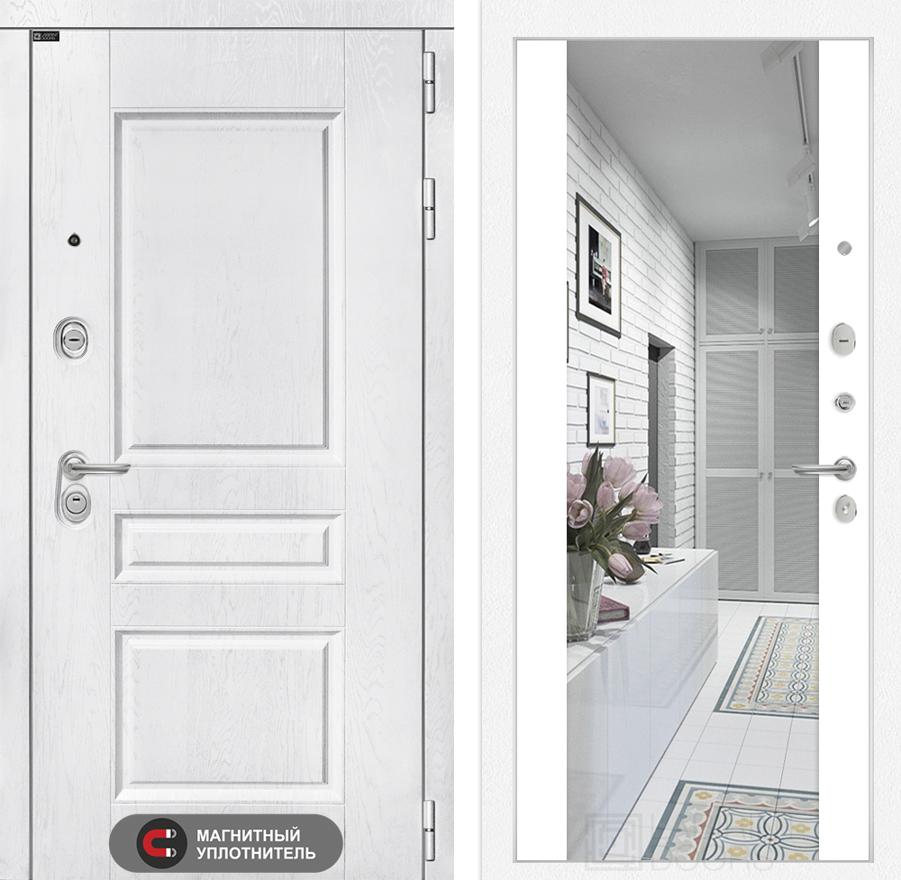 Внутренняя отделка: Декоративная MDF панель 12 мм с широким зеркалом, цвет «Белый софт» (без текстуры)