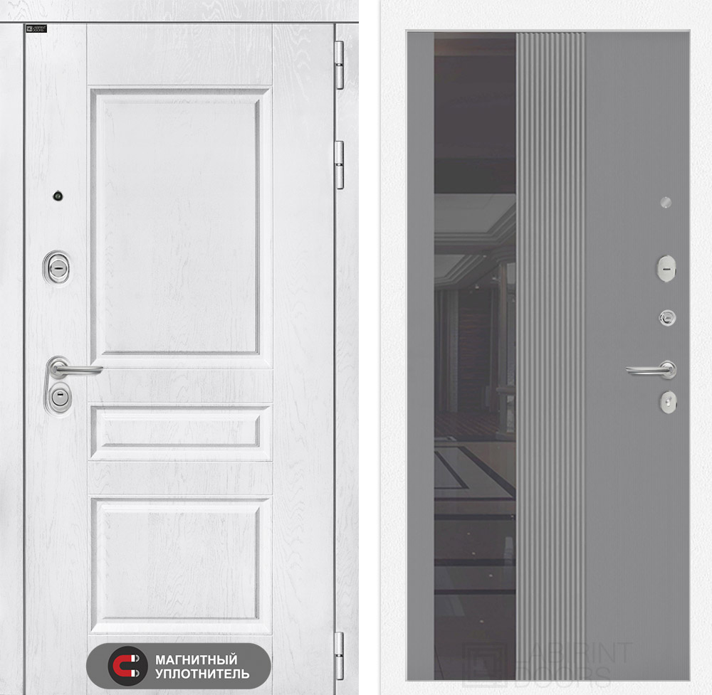 Отделка снаружи: Классическая MDF панель 16 мм с наличником, цвет «Альберо браш серебро»