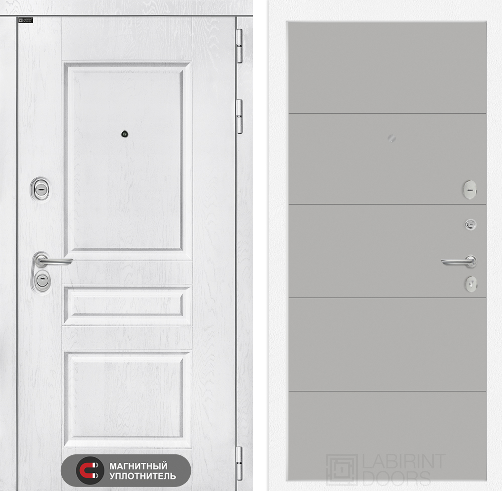 Отделка снаружи: Классическая MDF панель 16 мм с наличником, цвет «Альберо браш серебро»