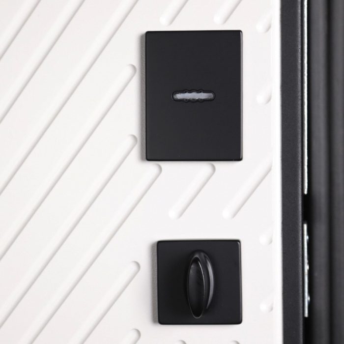 Фурнитура: Ручка, ночная задвижка, глазок на квадратной розетке (цвет «черный»). Смотрите также: ДВЕРНЫЕ ГАДЖЕТЫ
