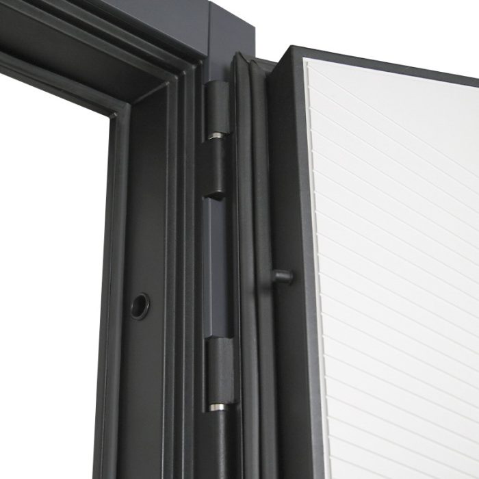 Модель «Двустворчатая» – стальная дверь для тамбуров и помещений с широкими дверными проемами. Благодаря двум рабочим створкам в конструкции, данная модель очень удобна в эксплуатации тем, что существенно экономит полезное пространство за счет уменьшенного радиуса открывания.