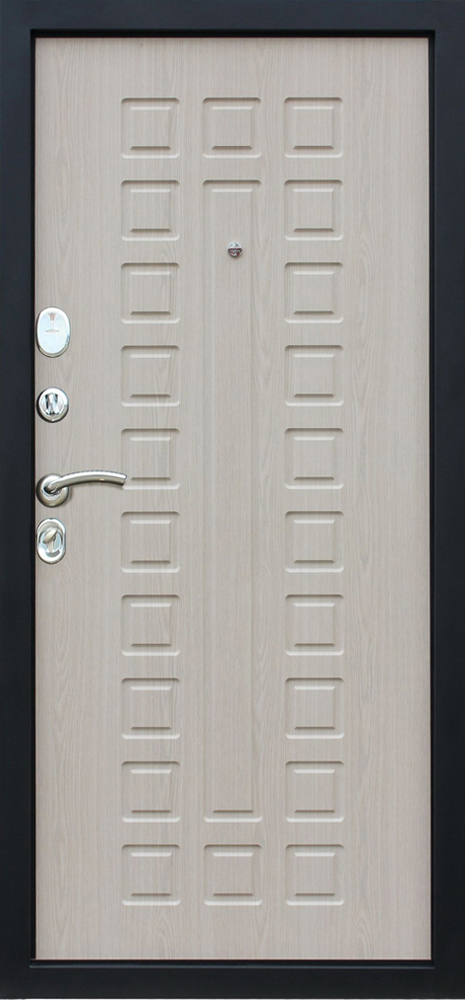 Фурнитура: Ручка, глазок, ночная задвижка на круглой розетке. Цвет «хром». Смотрите также: ДВЕРНЫЕ ГАДЖЕТЫ