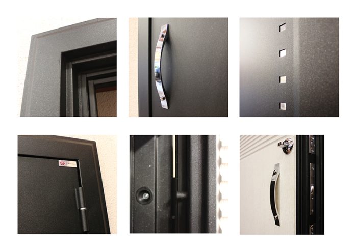 Фурнитура: Ручка скоба. Глазок, ночная задвижка на круглой розетке. Цвет «хром». Смотрите также: ДВЕРНЫЕ ГАДЖЕТЫ