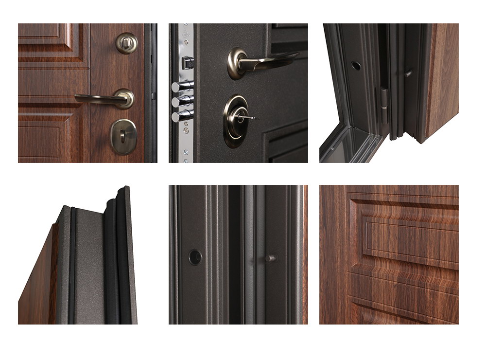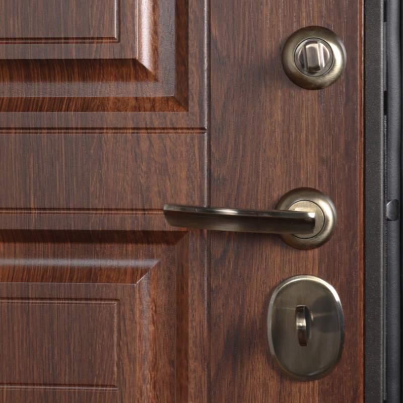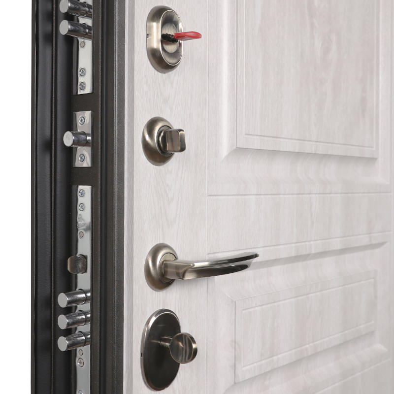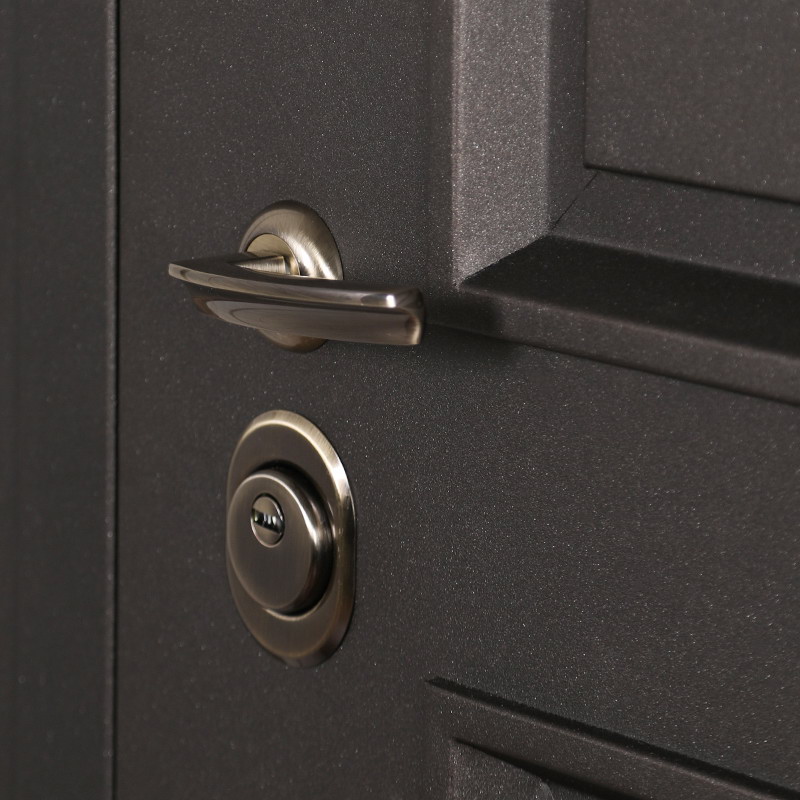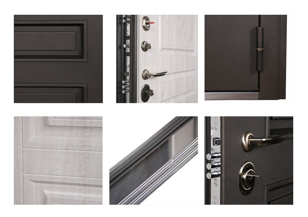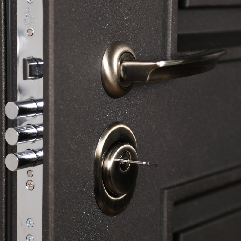 Дополнительно: Евроцилиндр К-В перфокарта. Броненакладка врезная. Штырь противосъемный (3 шт.). Порог из нержавеющей стали (цвет «хром»).