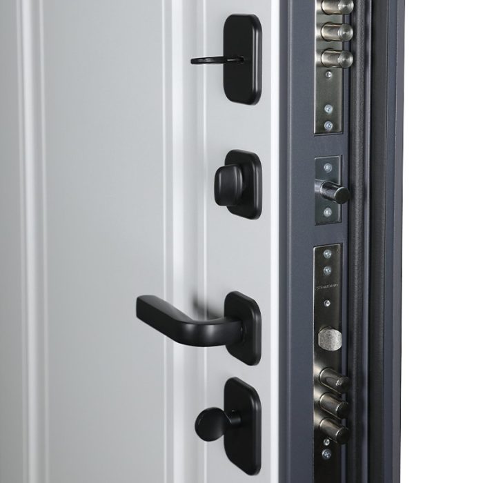 Дополнительно: Евроцилиндр К-В (перфокарта). Броненакладка врезная на нижний замок. Штыри противосъемные (3 шт).