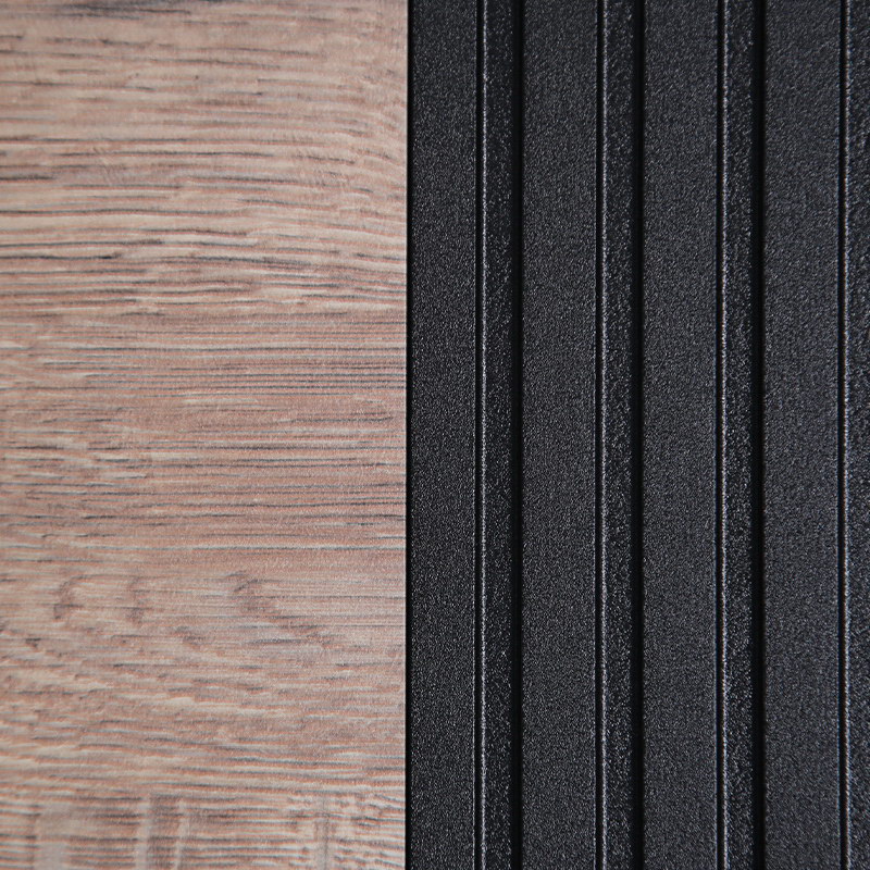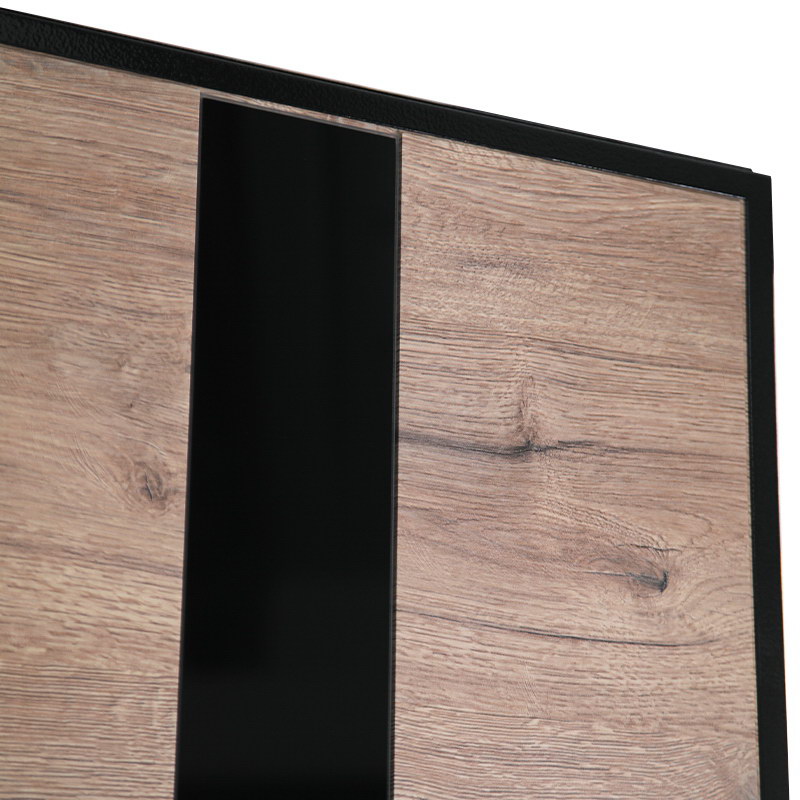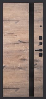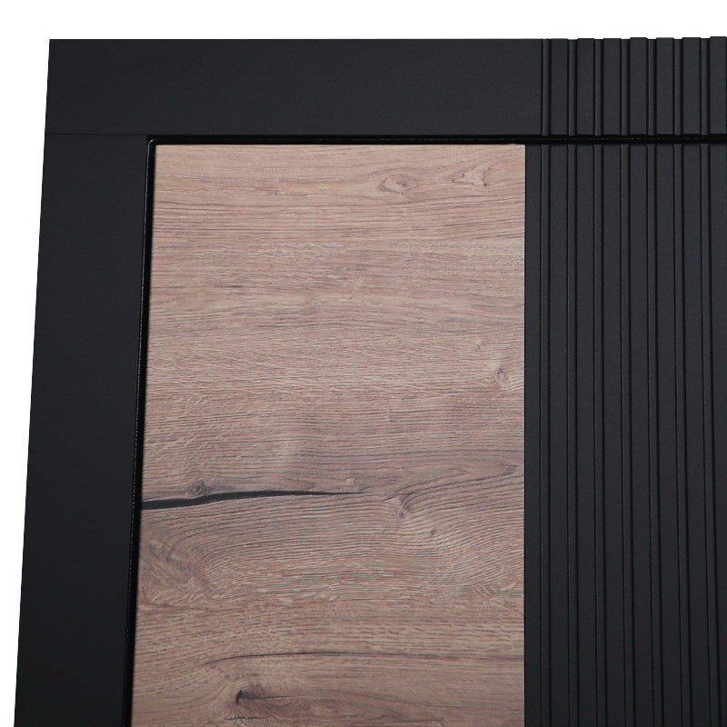 Внутренняя отделка: Экошпонированная панель МДФ 10 мм. (Дизайн ФЛС). Цвет «дуб панцифик горизонт». Вставка из черного лакобеля (100 мм).