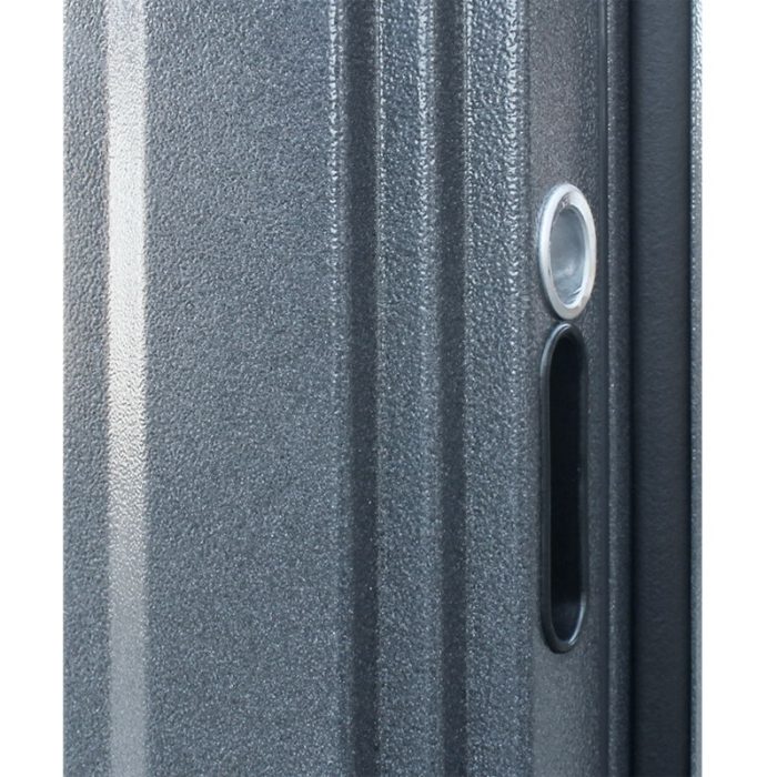 Стальная дверь «Вектор с зеркалом» - выполнена в строгом универсальном дизайне, который одинаково хорошо будет смотреться в интерьере дома и современного офиса. Зеркало, вмонтированное во внутреннюю панель, позволит сократить расходы покупателей, на дополнительное приобретение зеркала.