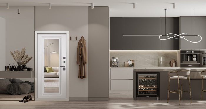 Стальная дверь «Арктика» с зеркалом (терморазрыв 3к)