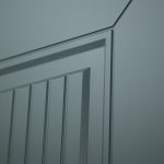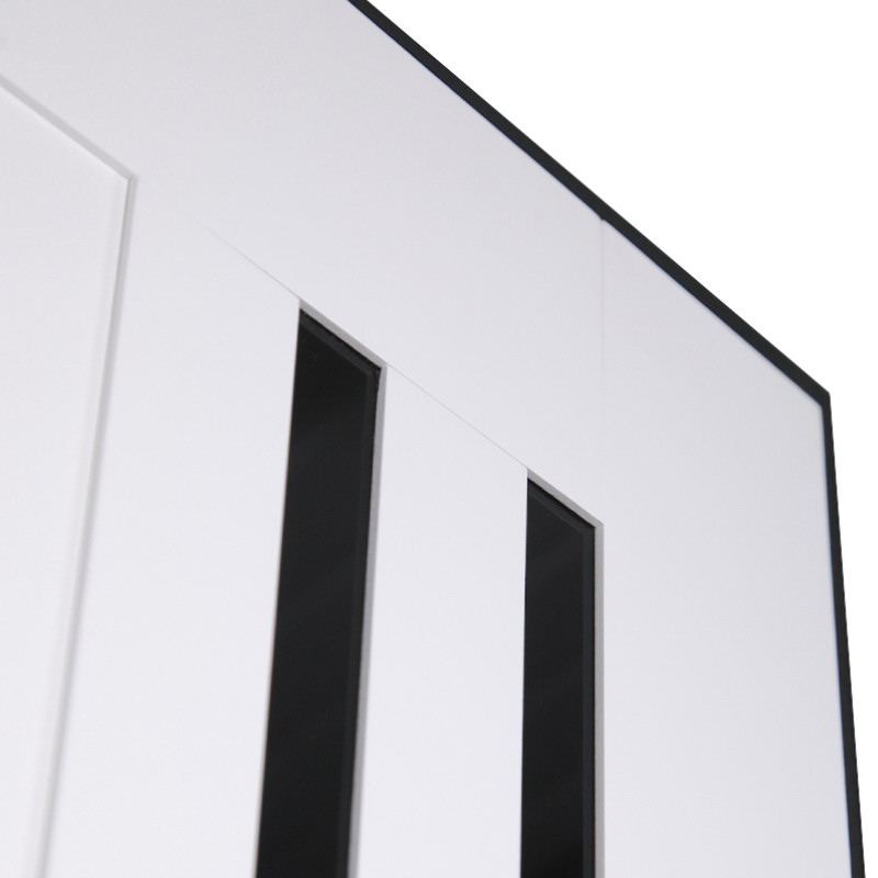 Внутренняя отделка: Экошпонированная сборная панель МДФ 16 мм. Цвет: «белый матовый». Вертикальные вставки из черного стекла.