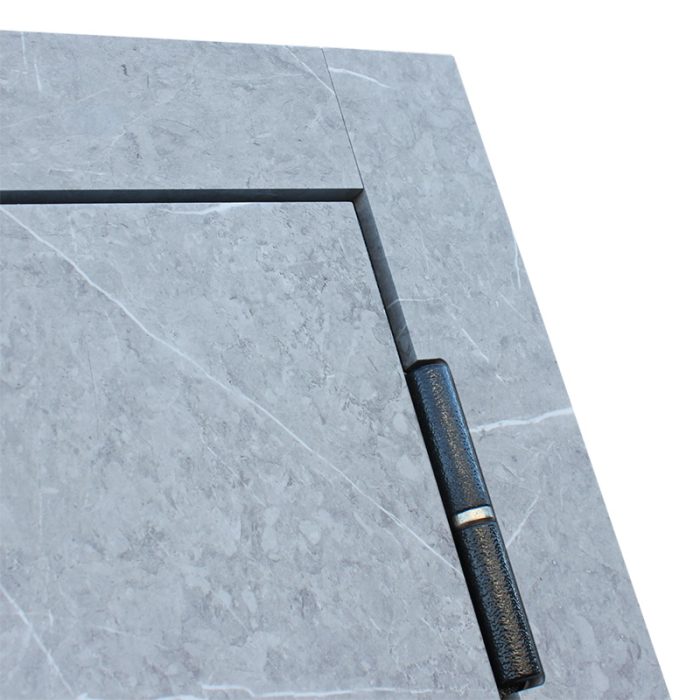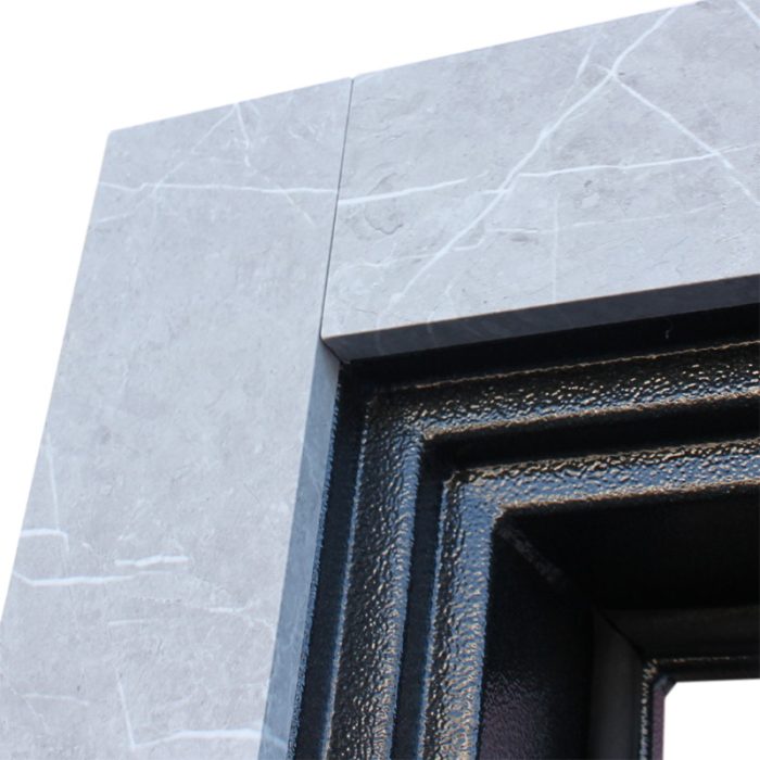Внутренняя отделка: Экошпонированная панель МДФ 10 мм. Цвет «силк сноу». Декоративная вставка из нержавеющей стали.