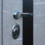 Фурнитура: Ручка, ночная задвижка, глазок на квадратной розетке. Цвет фурнитуры «хром». Смотрите также: ДВЕРНЫЕ ГАДЖЕТЫ