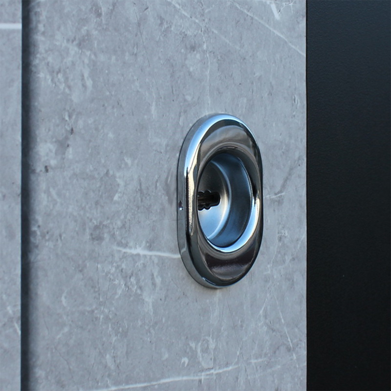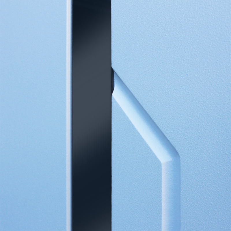 Внутренняя отделка: Экошпонированная панель МДФ 10 мм. Цвет «силк сноу». Декоративная вставка из нержавеющей стали.