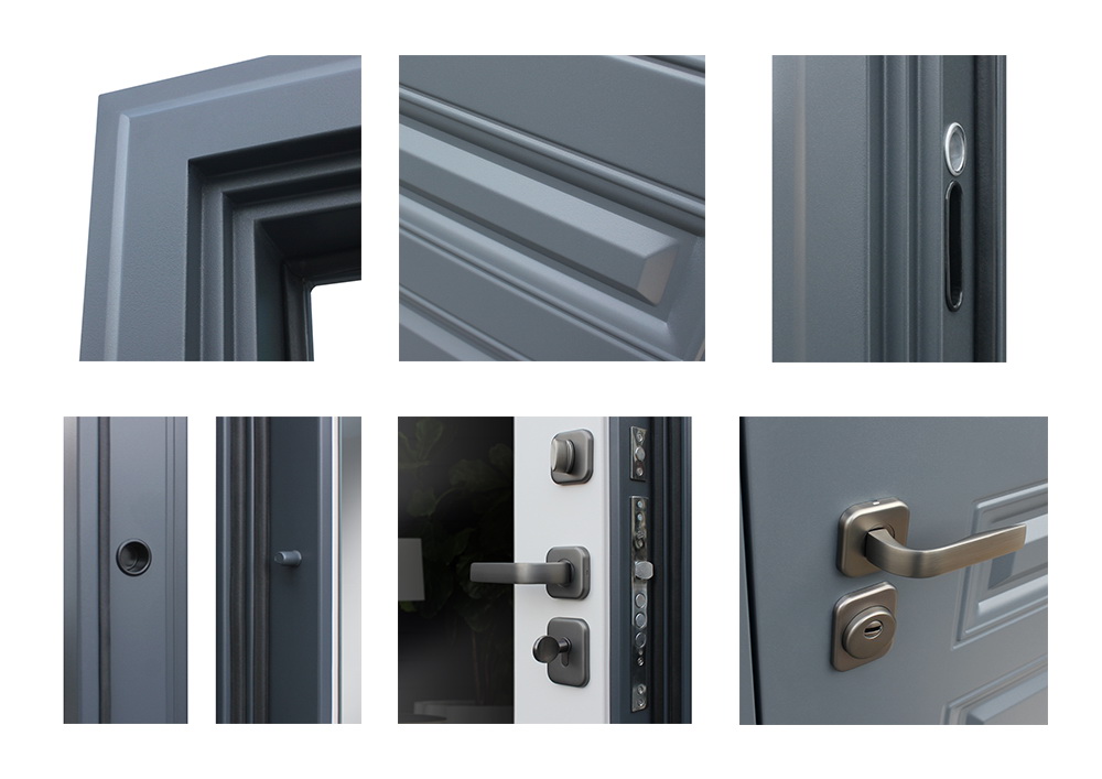 Фурнитура: Ручка, ночная задвижка, глазок на квадратной розетке. Цвет «графит». Смотрите также: ДВЕРНЫЕ ГАДЖЕТЫ