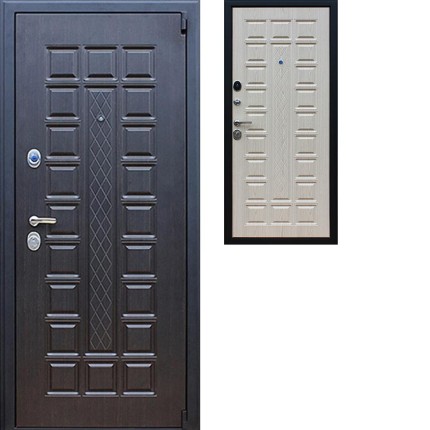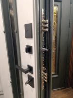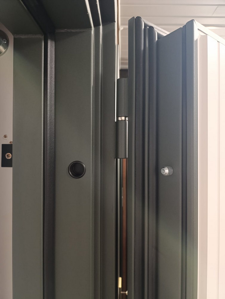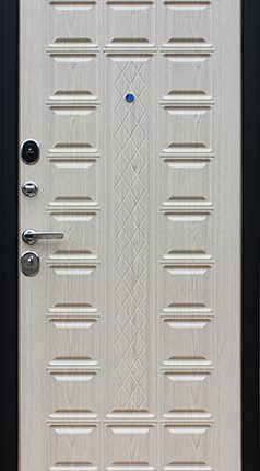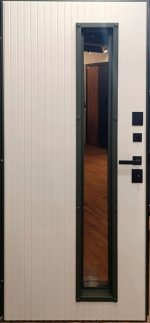 Дополнительно: Евроцилиндр К-В перфокарта. Броненакладка врезная. Штырь противосъемный (3 шт). Порог из нержавеющей стали (цвет «хром»).