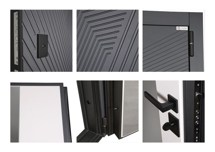 Дополнительно: Евроцилиндр К-В перфокарта. Броненакладка врезная. Штырь противосъемный (3 шт). Порог из нержавеющей стали (цвет «хром»).