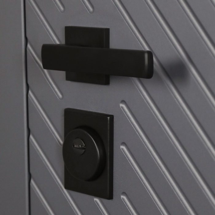 Фурнитура: Ручка, ночная задвижка, глазок на квадратной розетке (цвет «черный»). Смотрите также: ДВЕРНЫЕ ГАДЖЕТЫ