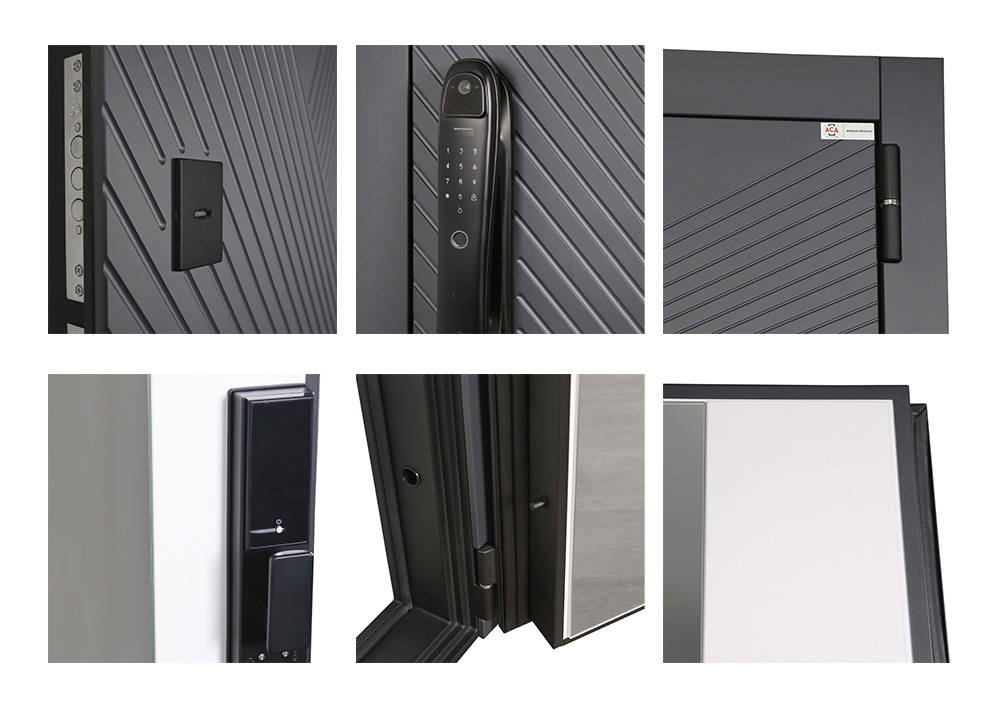 Дополнительно: Евроцилиндр К-В перфокарта. Броненакладка врезная. Штырь противосъемный (3 шт.). Порог из нержавеющей стали (цвет «хром»).