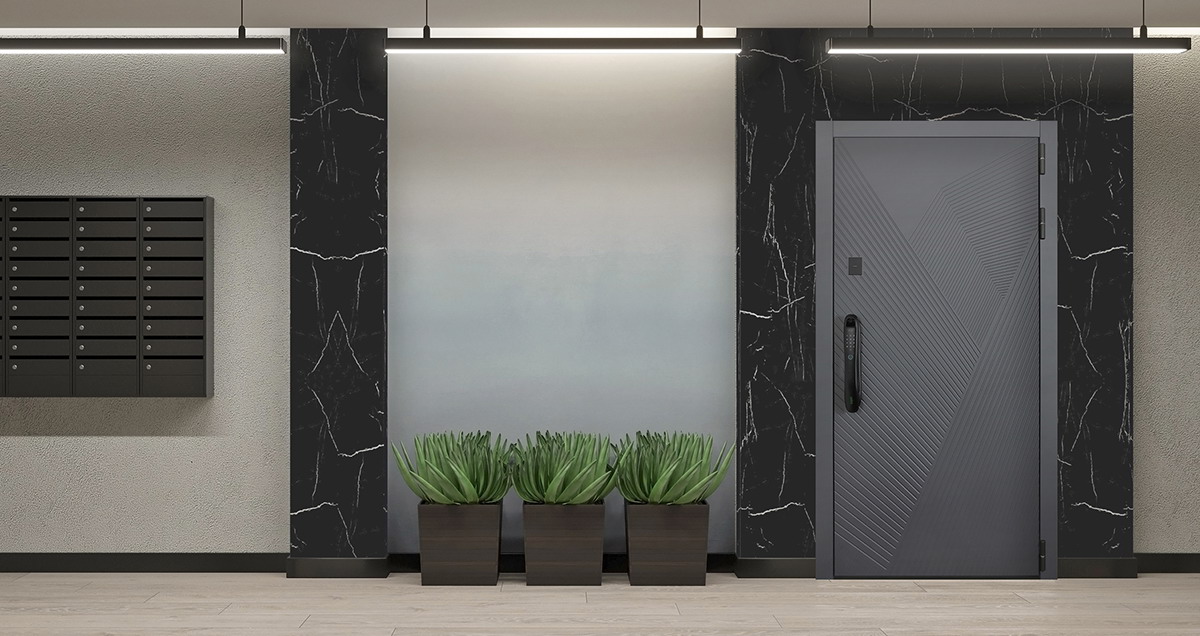 Стальная дверь «Бастион» с зеркалом (биометрический замок)