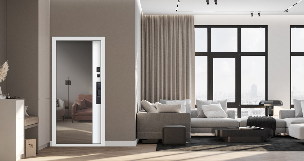 Главная Двери на заказ Стальная дверь «Бастион» с зеркалом (биометрический замок)