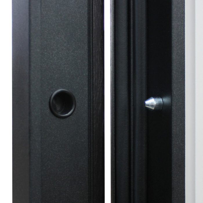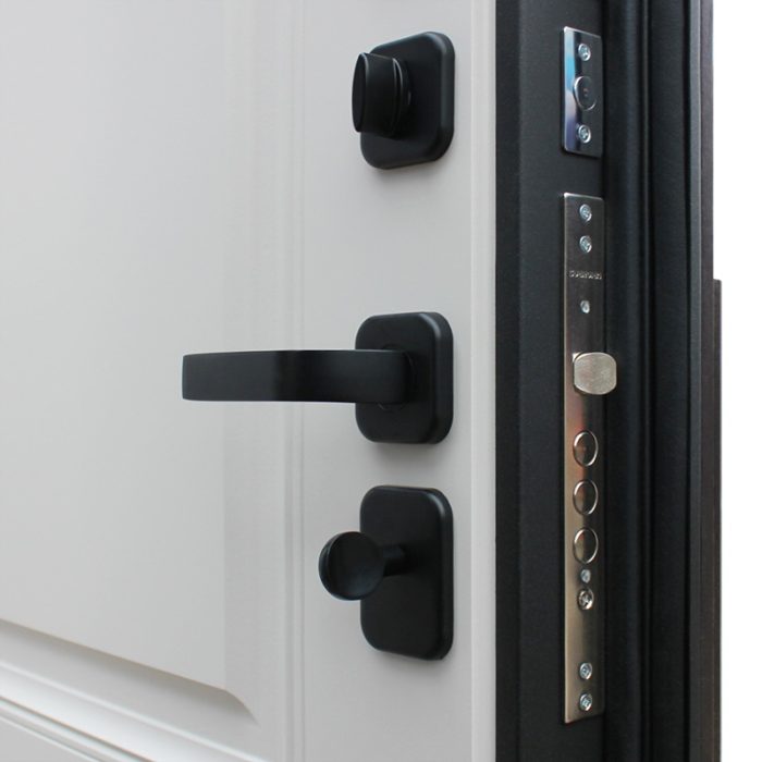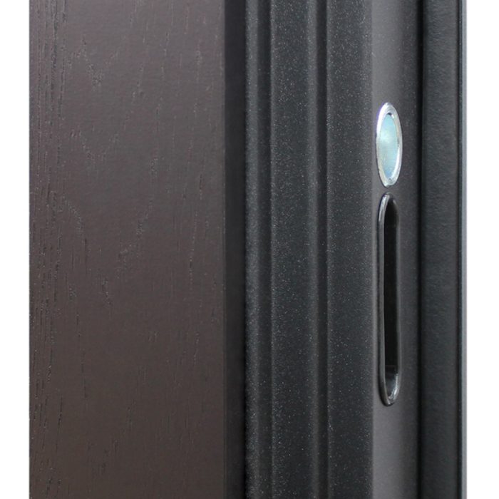 Фурнитура: Ручка, ночная задвижка, глазок на квадратной розетке. Цвет фурнитуры «черный». Смотрите также: ДВЕРНЫЕ ГАДЖЕТЫ