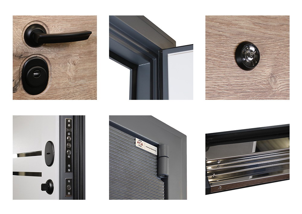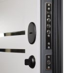 Фурнитура: Ручка, глазок, ночная задвижка на круглой розетке. Цвет «черный». Смотрите также: ДВЕРНЫЕ ГАДЖЕТЫ