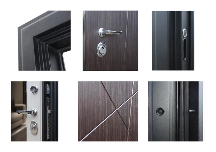 Фурнитура: Ручка, ночная задвижка, глазок на круглой розетке. Цвет «хром». Смотрите также: ДВЕРНЫЕ ГАДЖЕТЫ